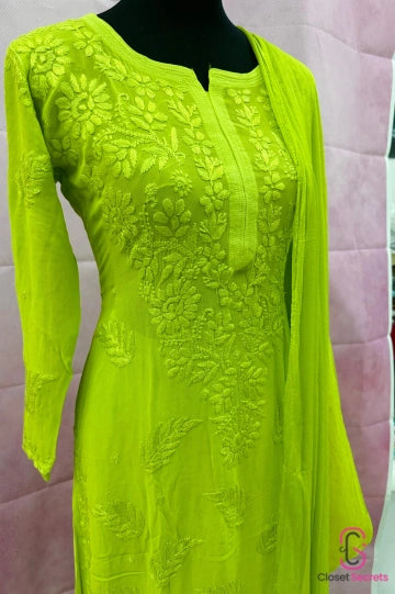 Viscose Georgette Solid 4pc Suit Set - Lime Green | Closetsecrets