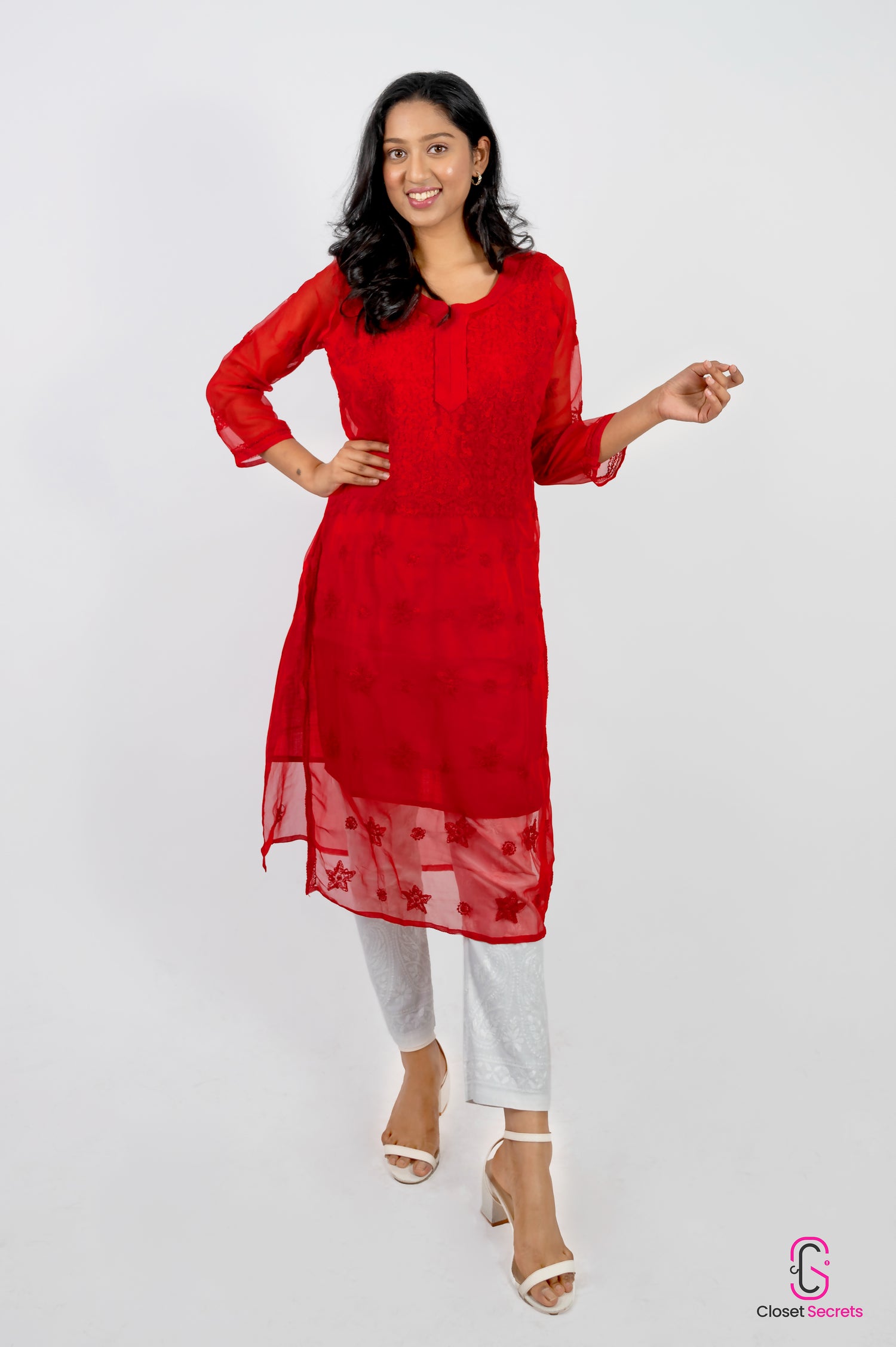 Gala Daman Straight Long Georgette Kurti | Closetsecrets