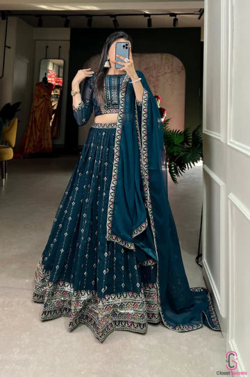 Viscose Georgette Solid 4pc Suit Set - Ocean Blue | Closetsecrets