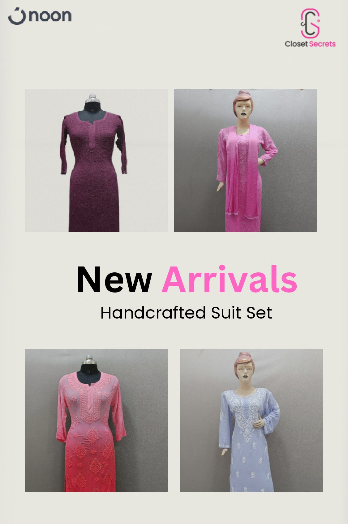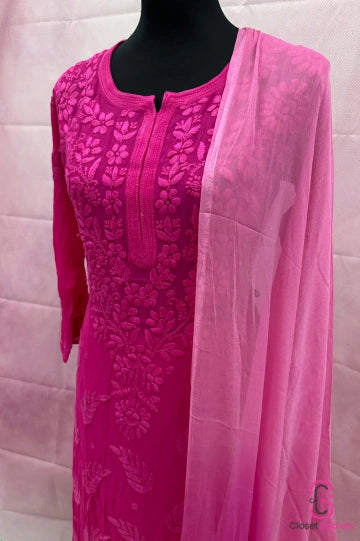 Viscose Georgette Solid 4pc Suit Set - Pink | Closetsecrets