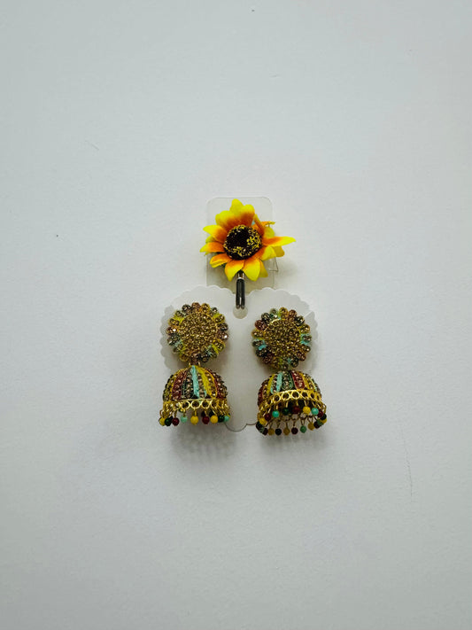 Traditional Jhumka Earrings with Multicolour Stone Detailing