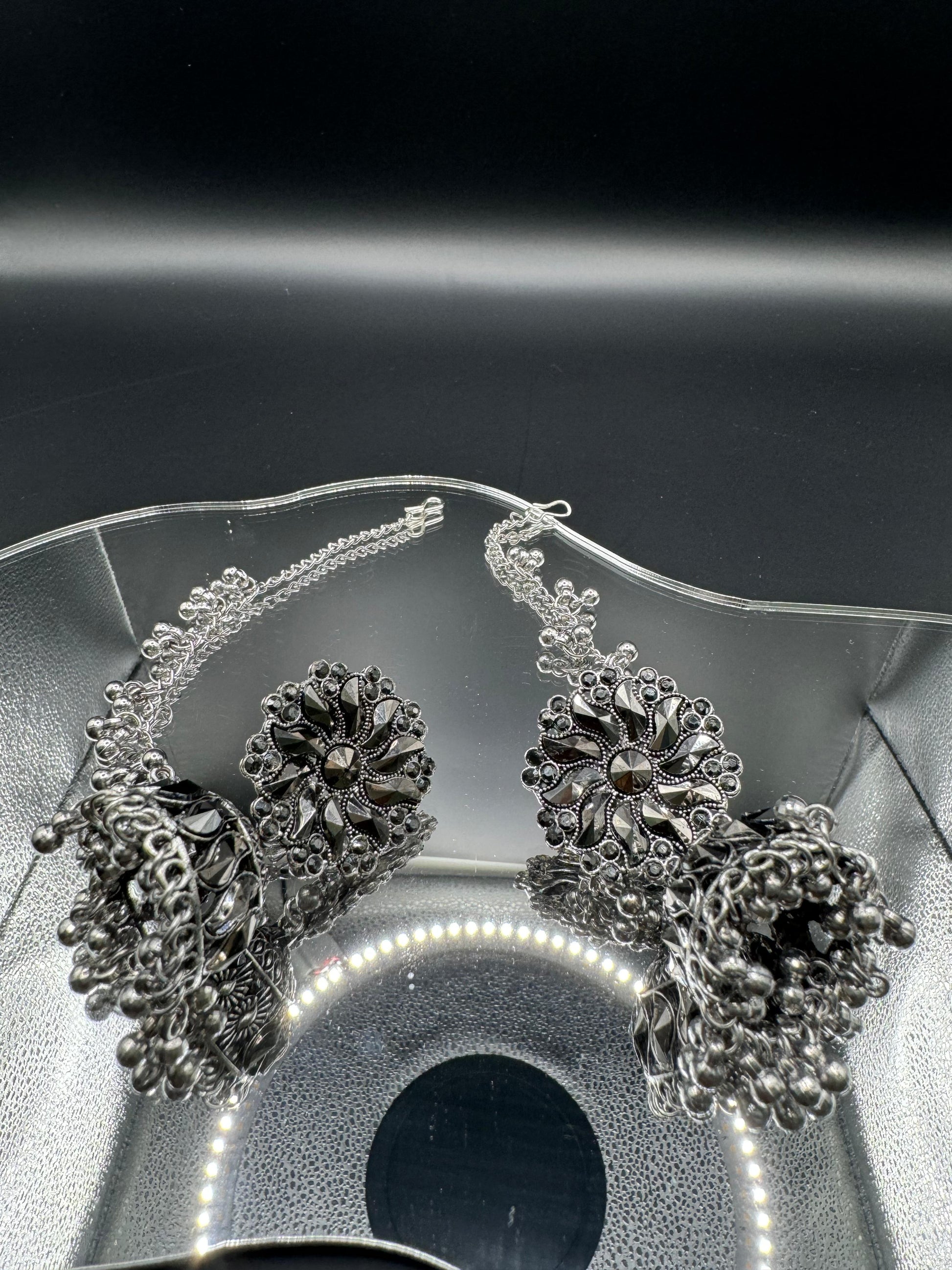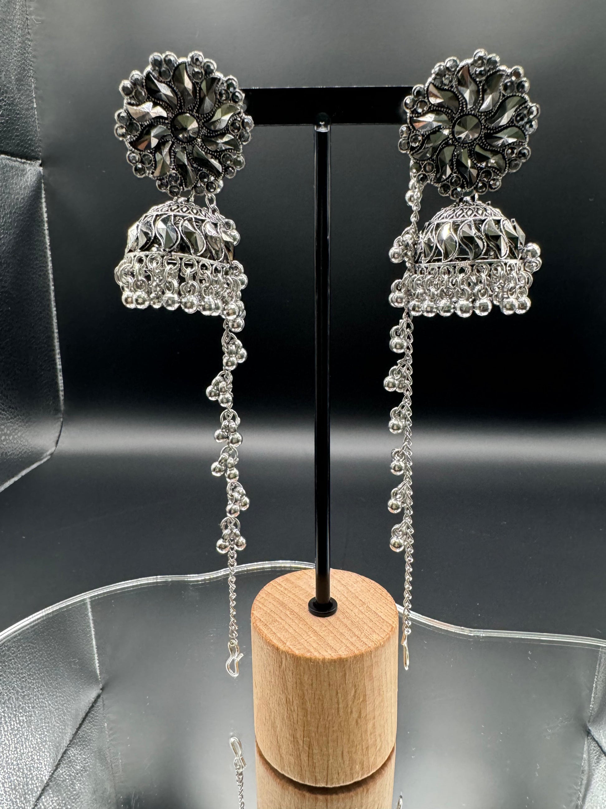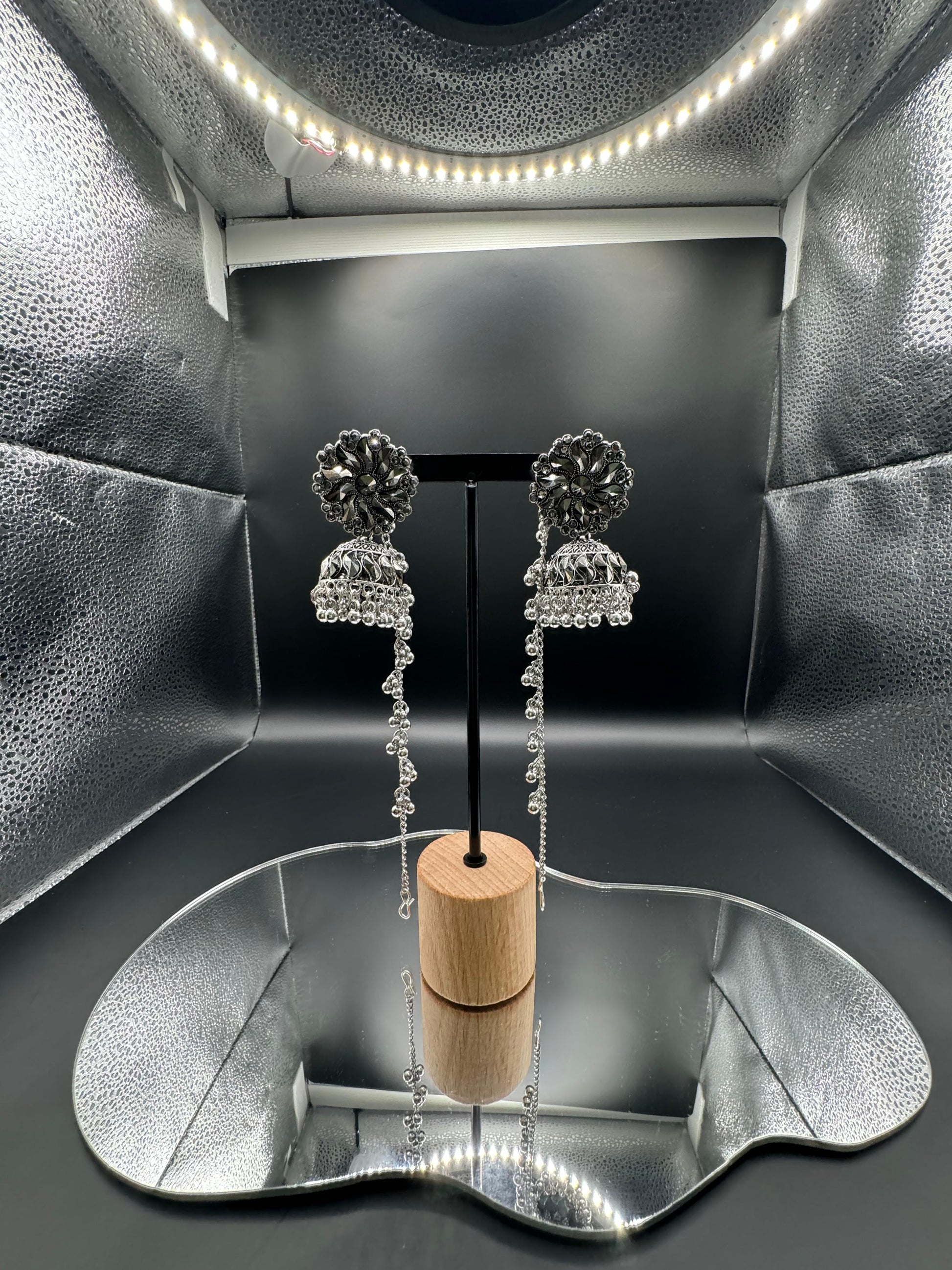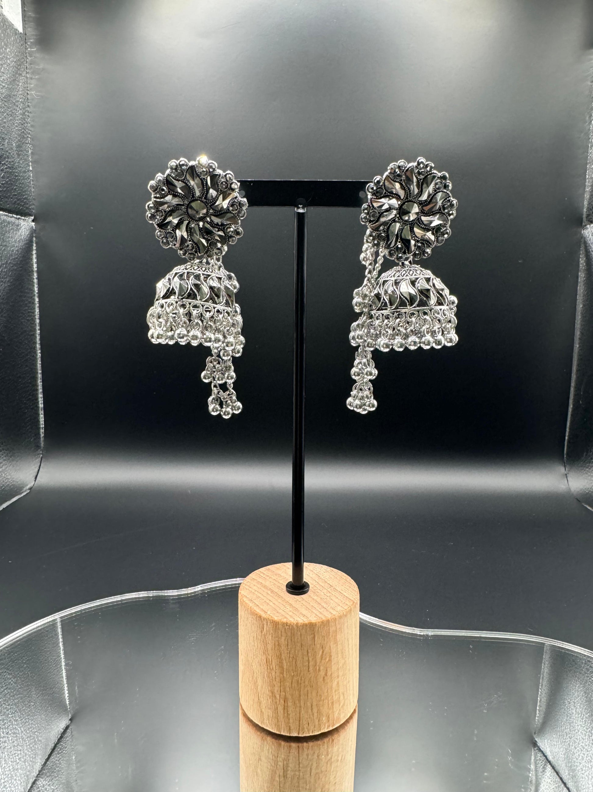 Add a timeless charm to your collection with the Alloy Jhumki Earrings - ER03. Crafted from high-quality alloy, these traditional jhumkis feature a beautifully intricate design that exudes elegance. The antique finish and classic bell-shaped silhouette make them the perfect accessory for ethnic outfits, whether for casual gatherings or festive occasions.