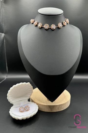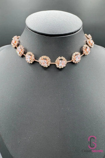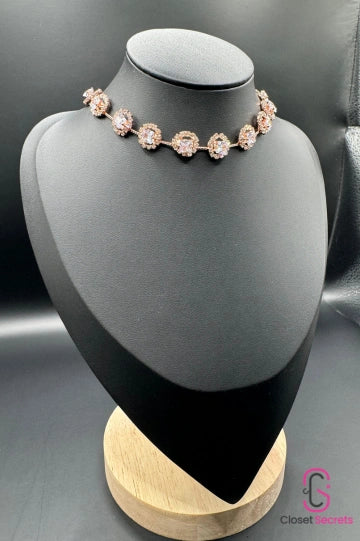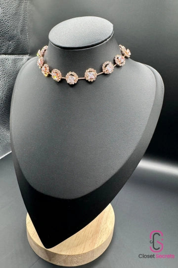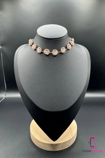 This elegant choker necklace features circular motifs set with sparkling cubic zirconia stones, perfect for adding a touch of sophistication to any outfit. Ideal for special occasions or everyday wear.