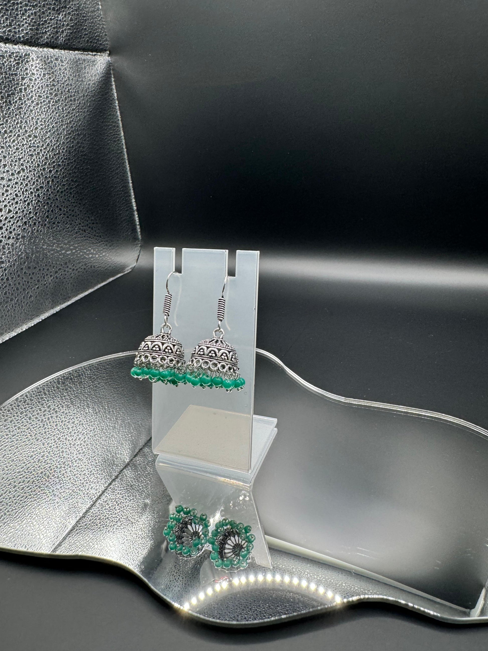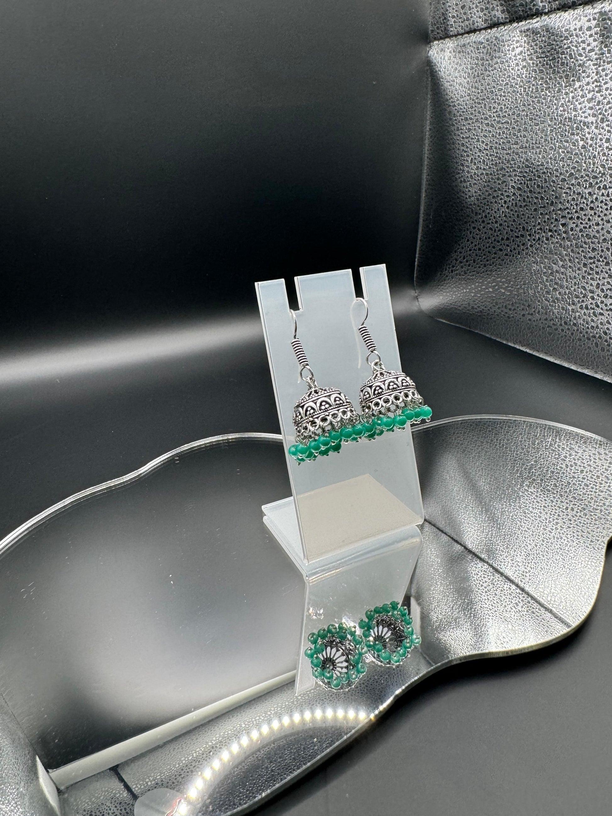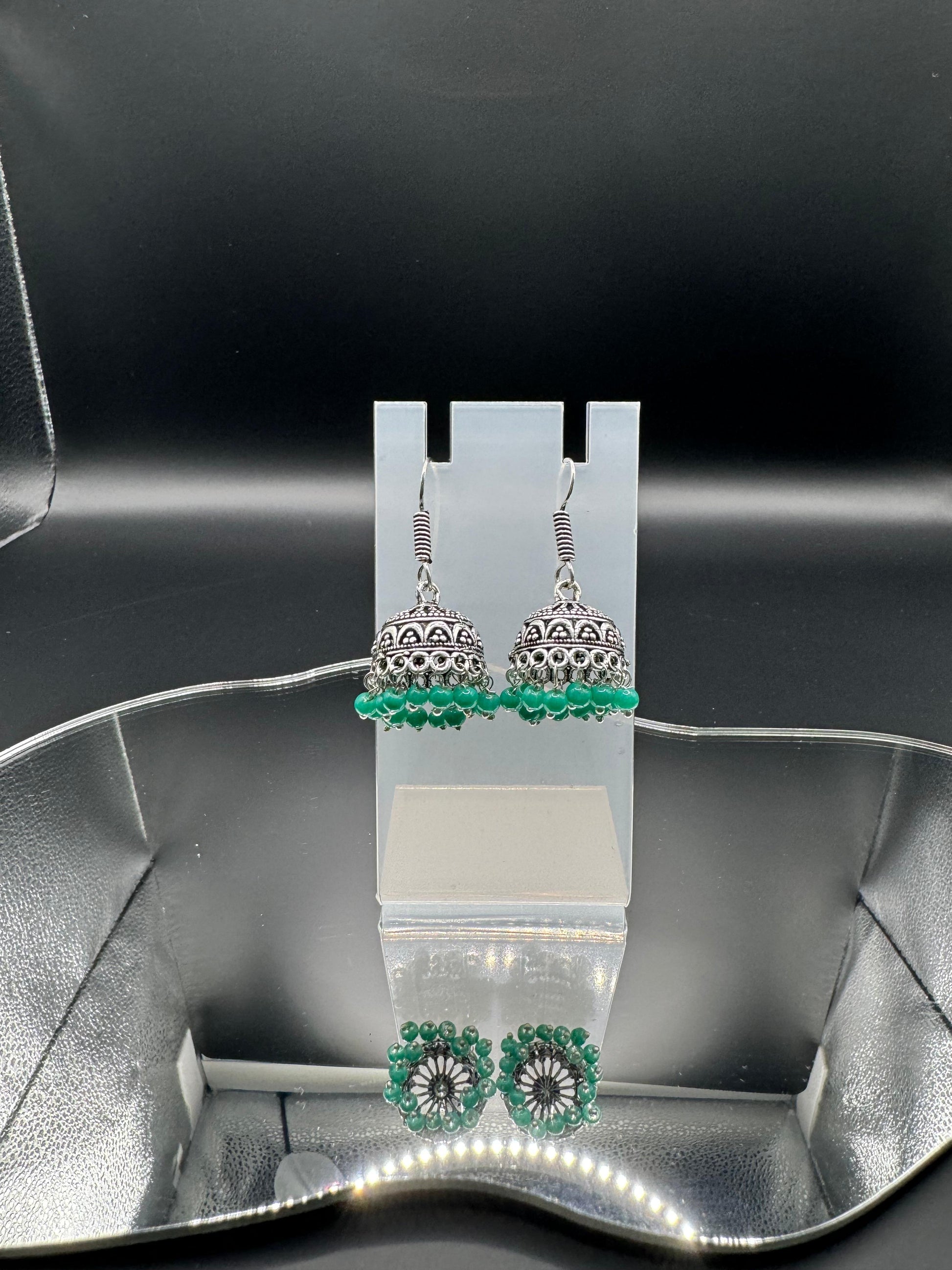Ocean Green Pearl Drop Jhumkas ER 12 | Closetsecrets