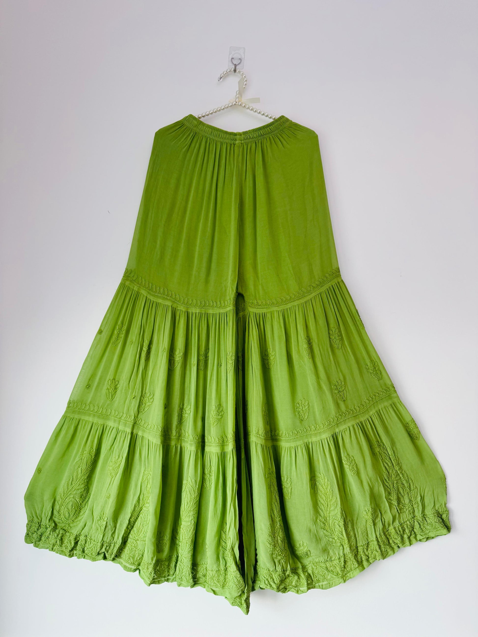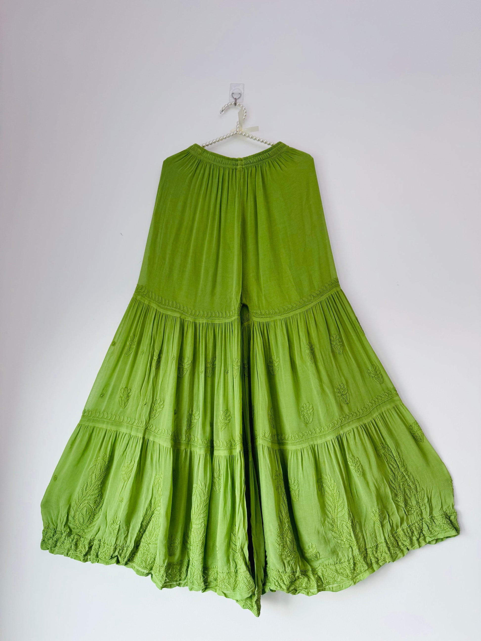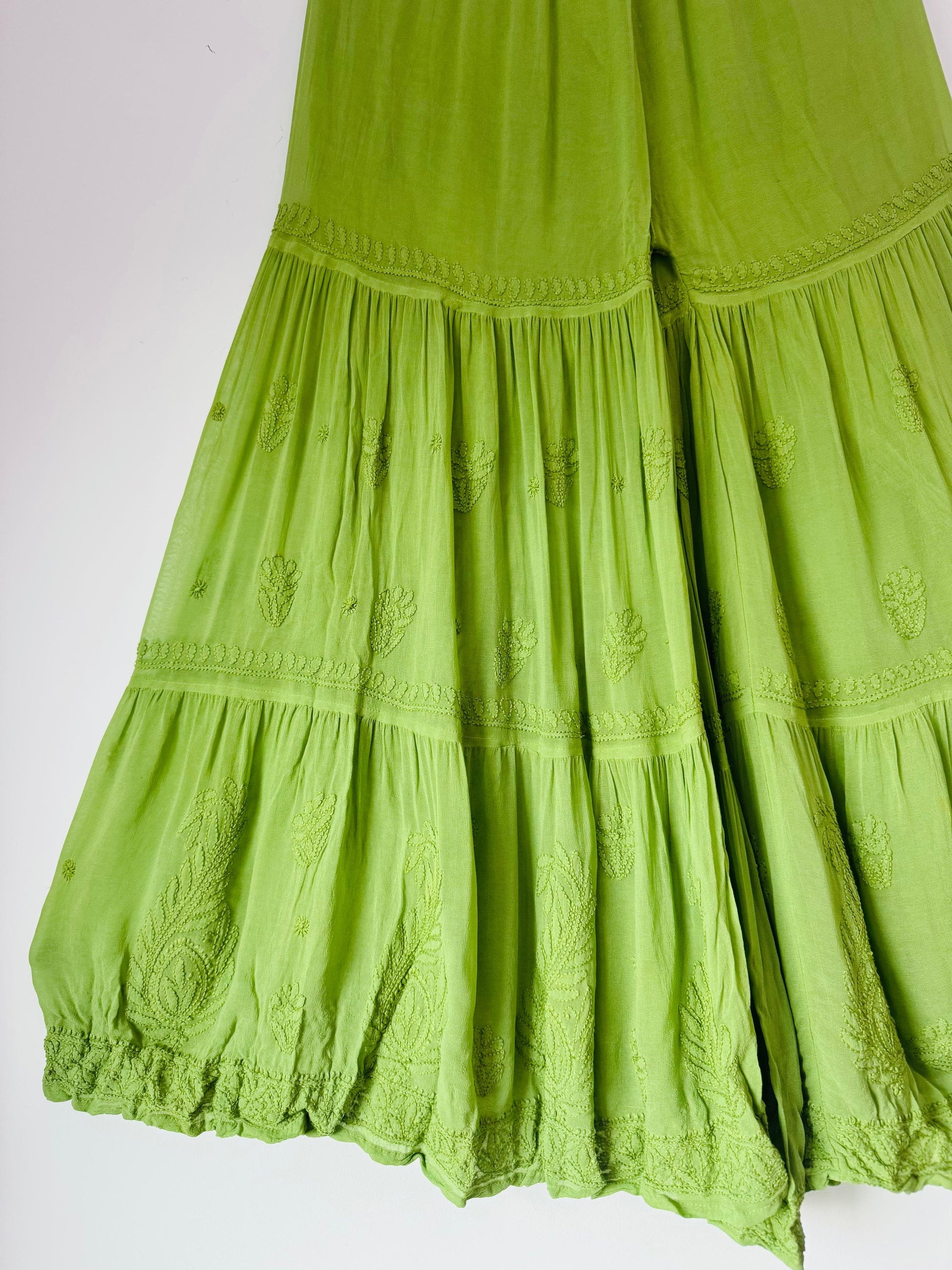 Crafted from soft and breathable viscose, this Garara bottom is designed for comfort, style, and effortless fit. Handmade chikankari. Its easy-fit silhouette, this bottom is suitable for all body types, so you don’t need to worry about size — it’s truly a “one size fits most” piece. Pair it with kurtas, short tops, or festive ensembles for a versatile, elegant look.