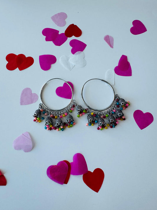 Multi-Color Pearl Jingle Bali Earrings | Premium Ethnic Hoop Jewelry