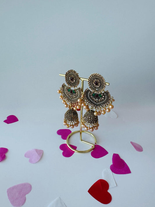 Triple Layered Golden Pearl Jhumkas | Elegant Ethnic Jewelry
