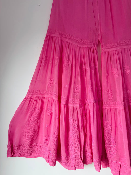 Handcrafted Chikankari Front Cut Kurti in Soft Baby Pink