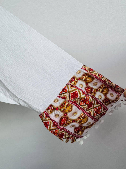Short Kurti with Traditional Red Printed Neckline | Casual Ethnic Wear
