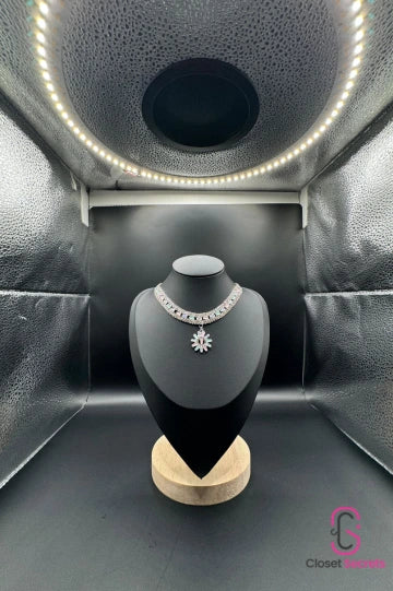 Light Pink Floral Necklace with Teardrop Pendant - NL 14 | Closetsecrets