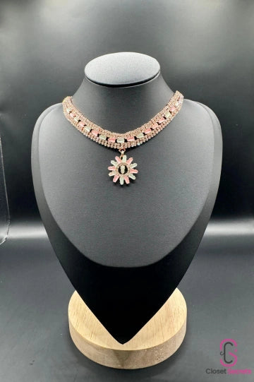 Rosegold Pastel stone choker with floral pendant NL 13 | Closetsecrets
