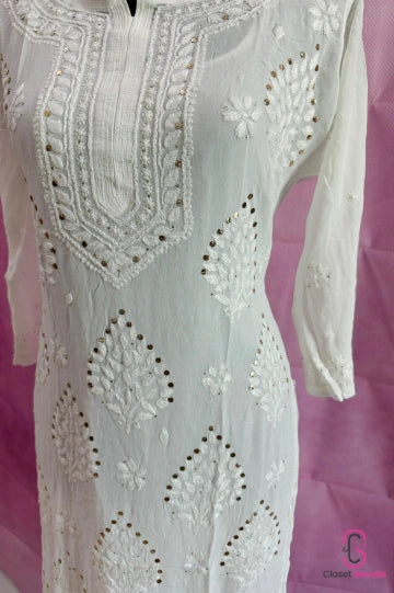 Viscose Georgette Solid 4pc Suit Set - White | Closetsecrets