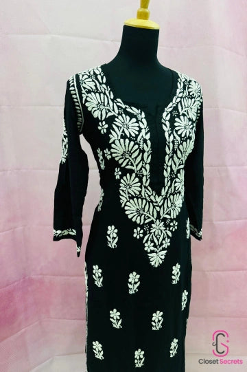 Viscose Georgette Solid 1pc Suit Set - Black | Closetsecrets