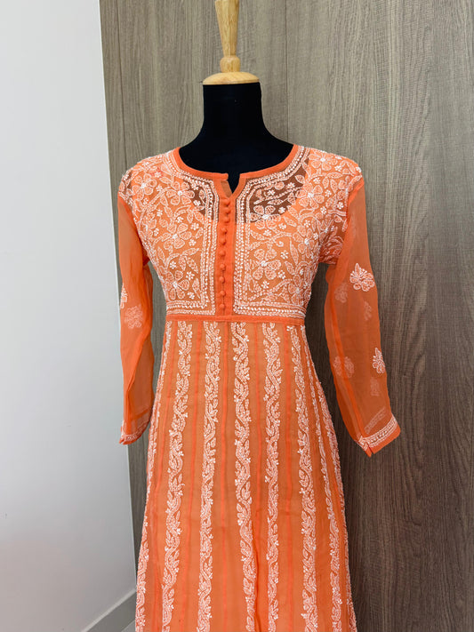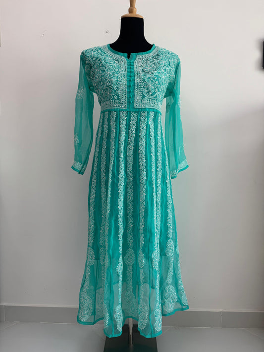 Handmade Chikankari Georgette Anarkali with Inner