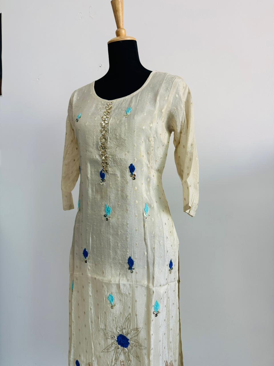 Elevate your ethnic wardrobe with this beautiful 3-piece shimmer suit set, crafted for style and comfort.