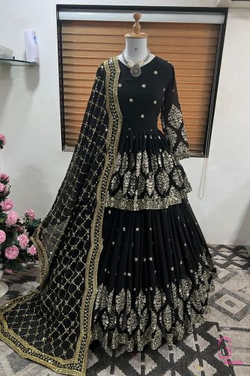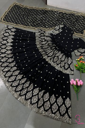 The exquisite Faux Georgette Lehenga is adorned with intricate sequence work, perfect for those special occasions where elegance meets luxury.