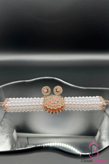 Rosegold Elegant Pearl Rhinestone Necklace NL 11 | Closetsecrets