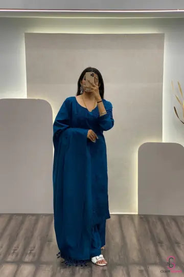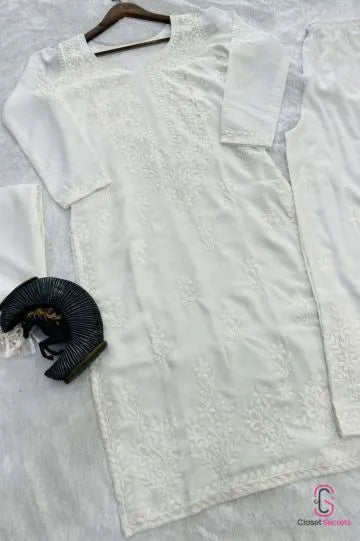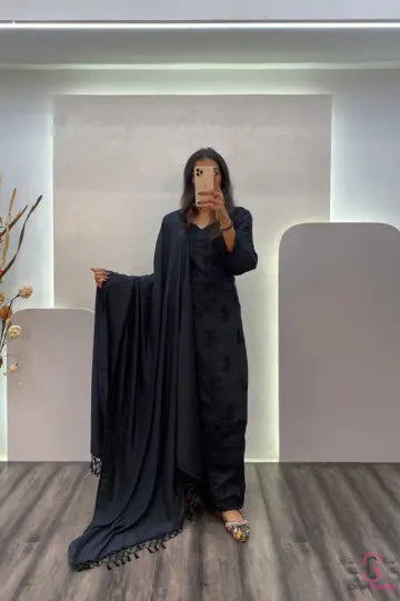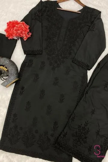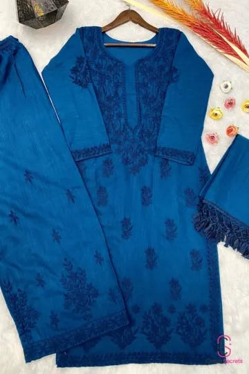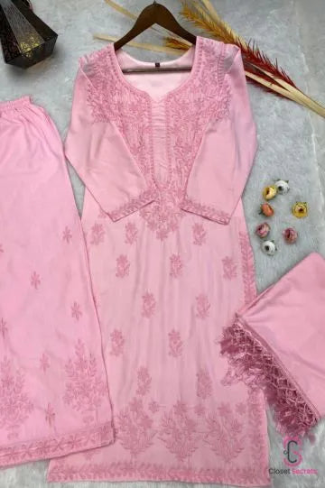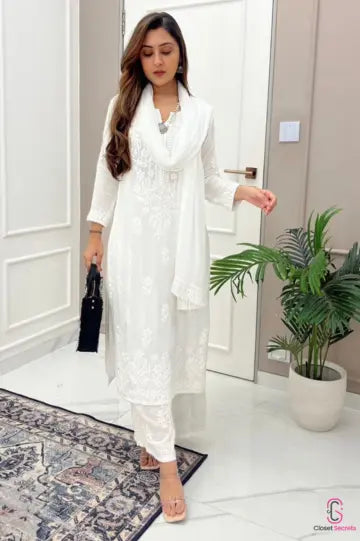 DESIGNER WEAR TRENDING SUMMER MASLIN TOP WITH COTTON THREAD EMBROIDERED WORK AND WORK PLAZO WITH DUPATTA