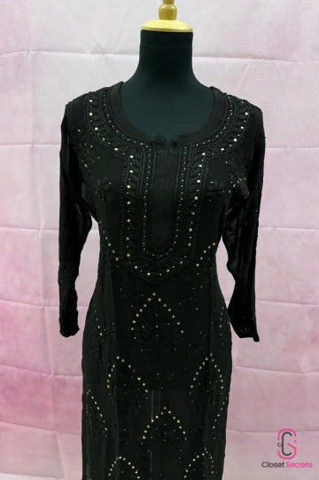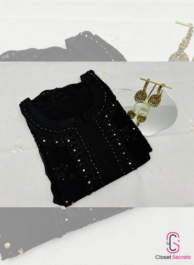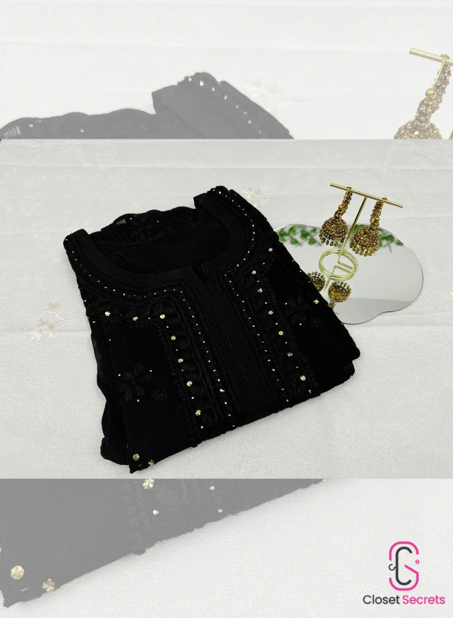 Viscose Georgette Black Suit with Golden Jhumka | Closetsecrets