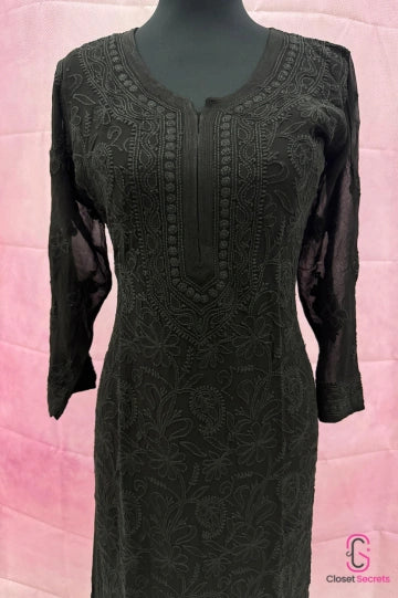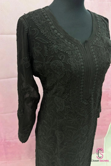 Viscose Georgette Solid 1pc Suit Set - Black | Closetsecrets