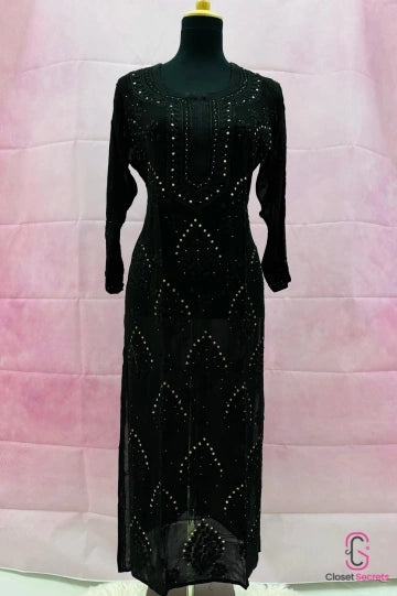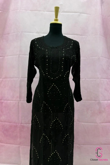 Viscose Georgette Solid 2pc Suit Set - Black | Closetsecrets
