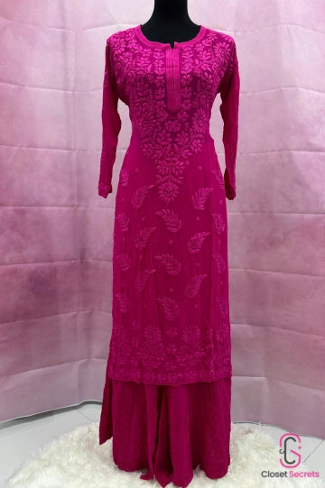 Stunning 4-piece kurta set. Crafted from high-quality viscose fabric, the set includes a beautifully designed kurta, sharara, dupatta, and an inner.