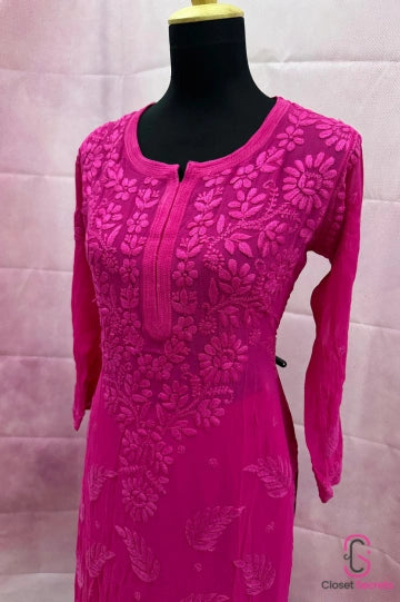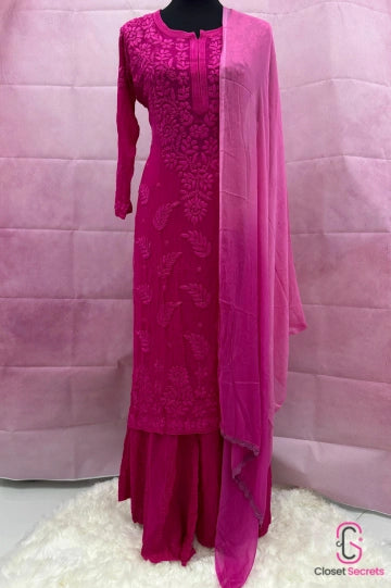 Viscose Georgette Solid 4pc Suit Set - Pink | Closetsecrets